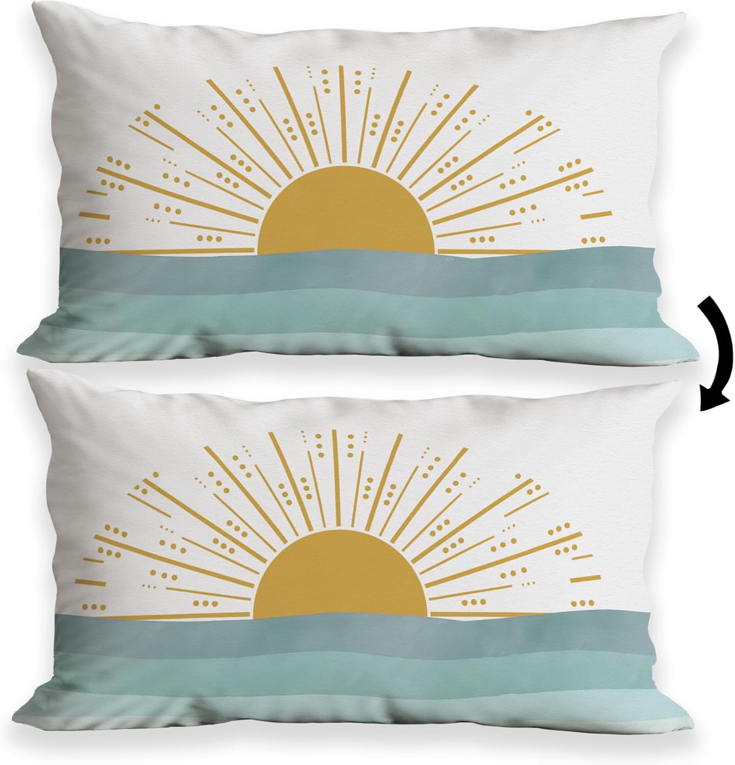 huester Boho Pillow Covers 12x20, Boho Pillow Cases, Boho Bohemian Sun Home Living Room Bedroom Decor, Yellow Boho Bohemian Sun Sunshine Sea River Reversible Pillows Decorative Throw Pillows Cover